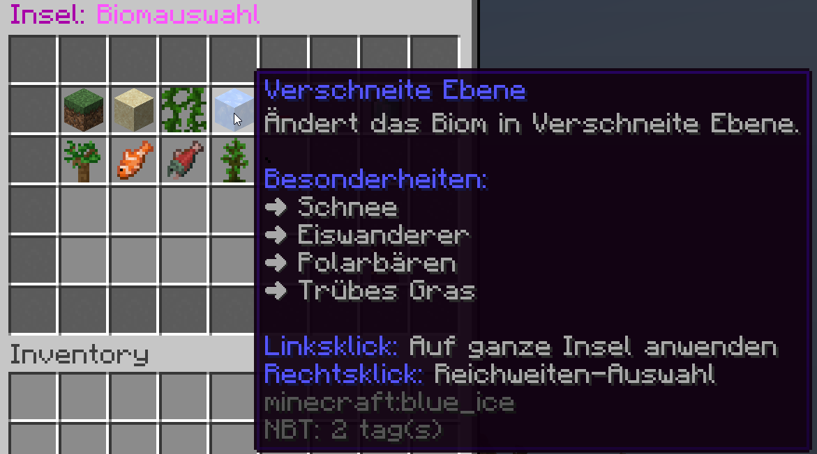 Zur Einstellung steht dir ein praktisches GUI zur Verfügung. Öffnen kannst du dieses mit dem Befehl /is biomes in deinem Chatfenster. Da die Einstellung am Anfang etwas unübersichtlich wirken kann, erklären wir dir diese anhand dreier Beispiele.
